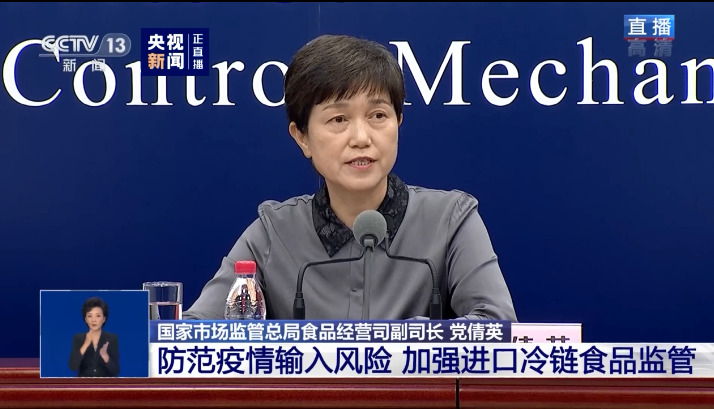 今天下午,國務院聯防聯控機制舉行發布會,介紹防范疫情輸入風險、加強進口冷鏈食品監管有關信息。會上,市場監管總局食品經營司副司長黨倩英介紹。新冠肺炎疫情發生以來,市場監管部門針對重點產品、重點場所、重點環節,進一步完善相關監管措施。