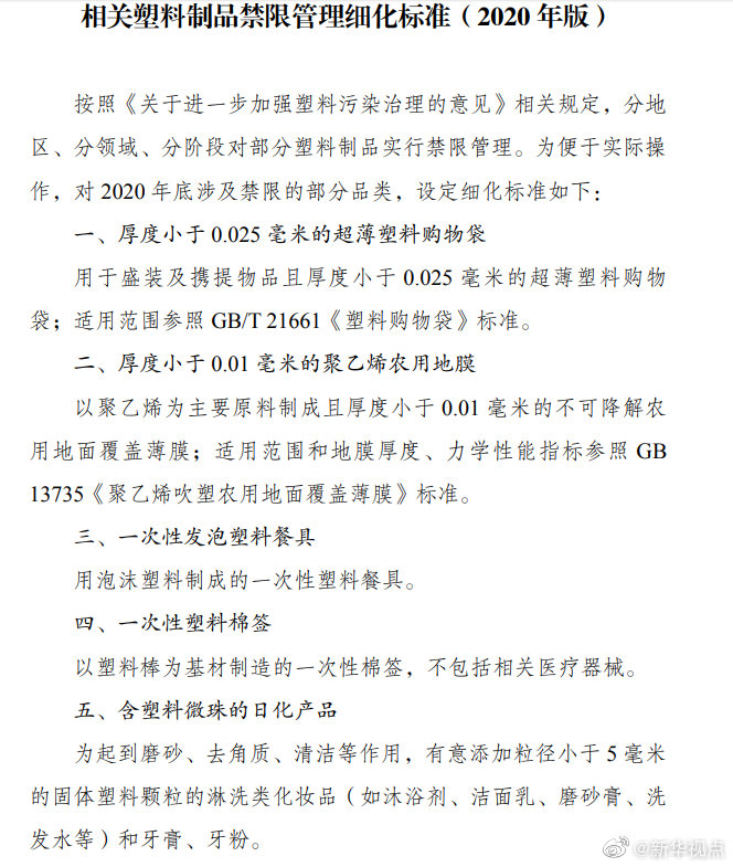 國家發(fā)展改革委等9部門17日公布文件,要求扎實推進塑料污染治理工作,8月底前,各地要啟動商場超市、集貿(mào)市場、餐飲行業(yè)等重點領(lǐng)域禁限塑推進情況專項執(zhí)法檢查。年底前,生態(tài)環(huán)境部、國家發(fā)展改革委將會同各相關(guān)部門開展塑料污染治理督促檢查聯(lián)合專項行動,對各地實施方案制定、工作推進和監(jiān)督執(zhí)法情況進行部委聯(lián)合督查。(記者安蓓)