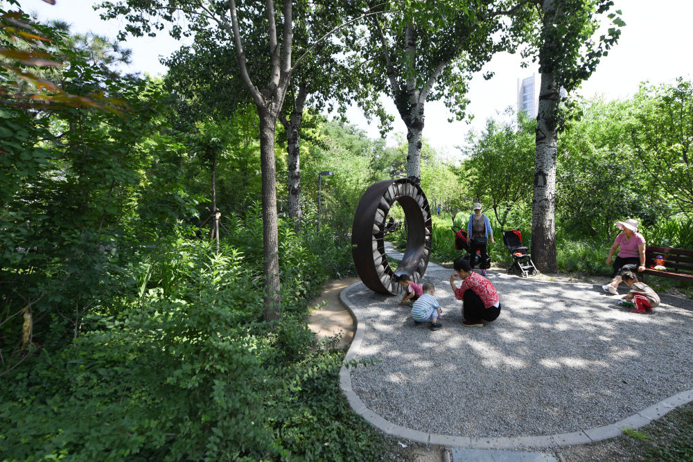 市民在北京市西城區“廣陽谷”城市森林內游玩(6月10日攝)。新華社記者 鞠煥宗 攝