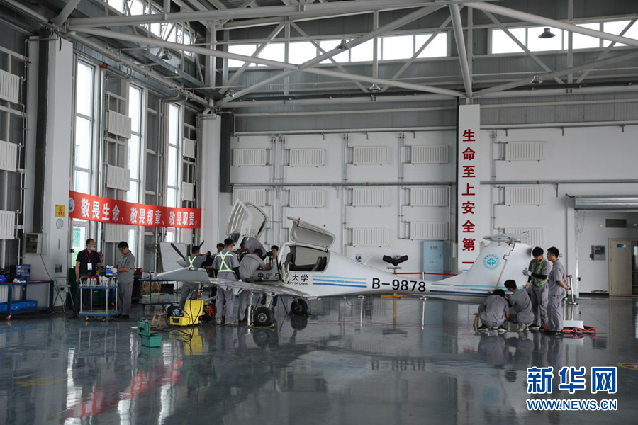 圖為機務人員在檢修飛行達到1000小時的訓練機。新華網記者焦鵬 攝