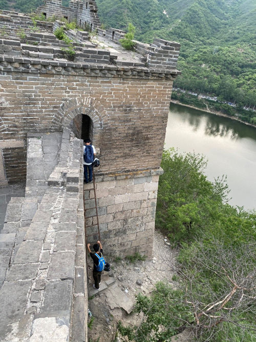 他說,登野長城是不允許的,近年來,北京市文物局也加大了巡查力度,設(shè)置了一些負(fù)責(zé)長城環(huán)保的公益志愿者和長城保護(hù)工作人員巡山。如果被發(fā)現(xiàn),梯子肯定要被鄉(xiāng)鎮(zhèn)沒收。據(jù)稱,登城所用的梯子就被鄉(xiāng)鎮(zhèn)沒收了3次。為保險起見,他會早晨放梯,晚上再撤掉。
