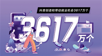 像張俊杰、潘仕學一樣在抖音上實現(xiàn)“靈活”就業(yè)的人還有很多。隨著越來越多的人全職或兼職以拍視頻為職業(yè),抖音目前已形成連接億萬用戶和創(chuàng)作者、商家的互利共生就業(yè)生態(tài)。據(jù)《報告》測算,過去一年,抖音整體帶動的直接和間接就業(yè)機會達3617萬個。