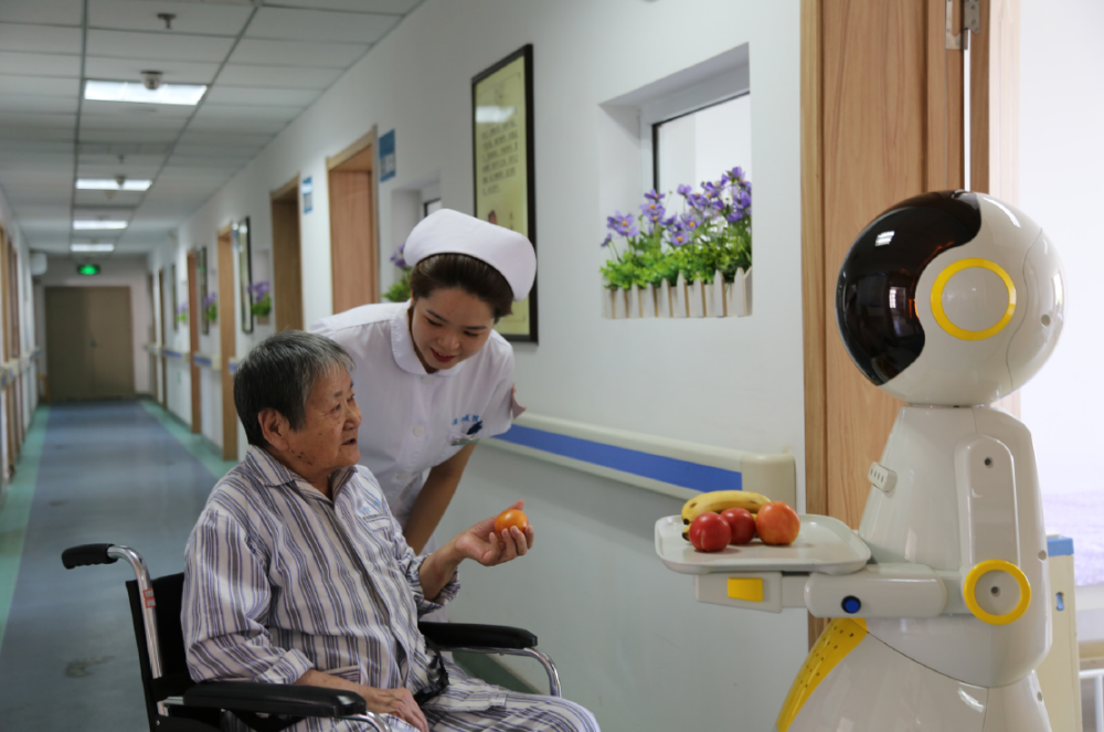情感陪護機器人服務老年患者。(沈陽安寧醫院供圖)