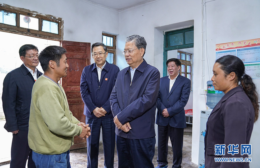 這是9月14日,趙樂際來到畢節市威寧縣格書村,走訪慰問貧困戶。 新華社記者 張領 攝