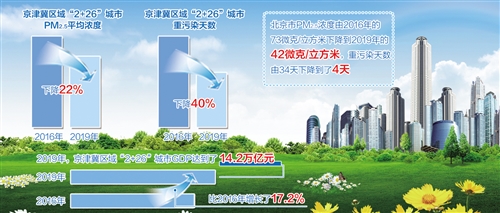 與此同時,2019年京津冀區域“2+26”城市生產總值達到14.2萬億元,比2016年增長了17.2%。