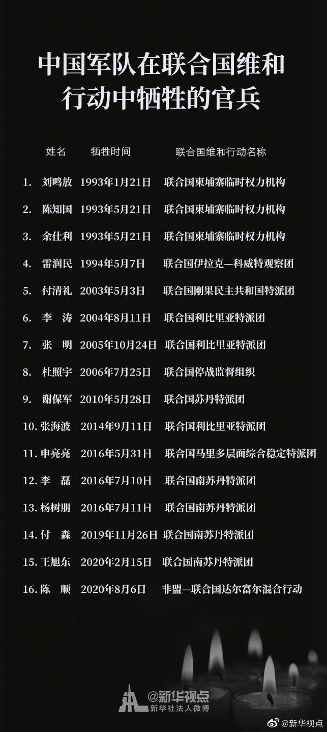 致敬!中國軍隊在聯合國維和行動中犧牲的官兵。?