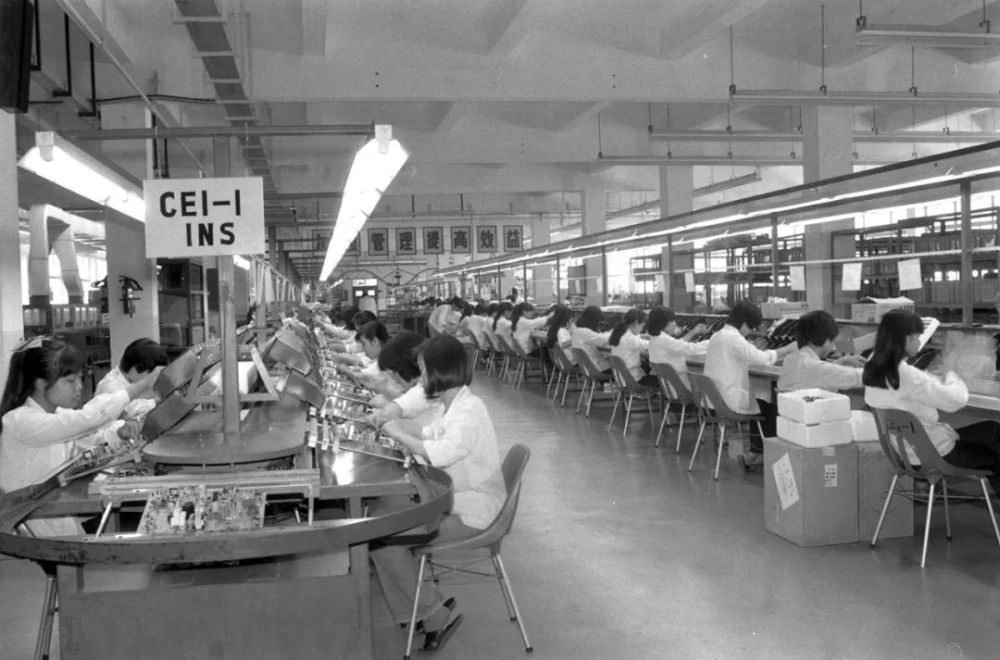 廈門特區湖里工業區廈華電子有限公司彩色電視機廠基板裝配生產線。新華社記者 李開遠 攝(1987年11月2日)