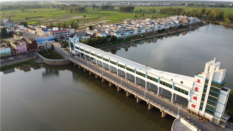 這是8月15日在安徽省阜南縣拍攝的淮河王家壩閘(無人機照片)。新華社記者 張端 攝