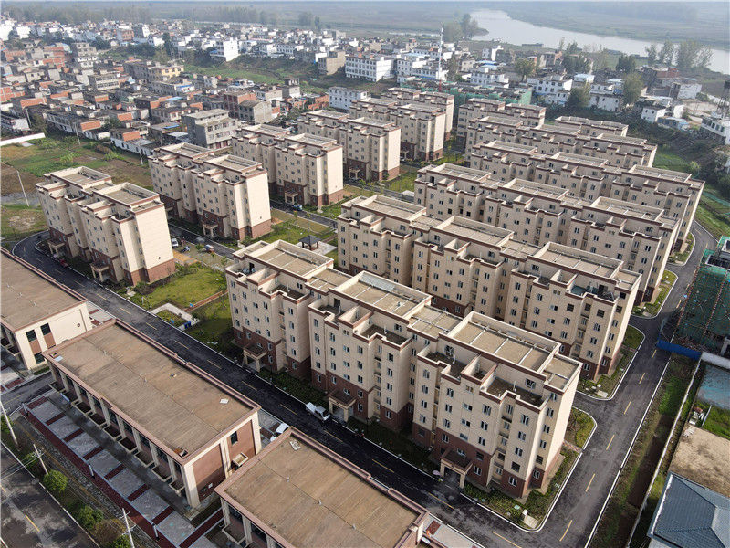 這是位于安徽省阜南縣王家壩鎮淮上社區的莊臺疏解降容工程居民安置點(10月16日攝,無人機照片)。新華社記者 周牧 攝