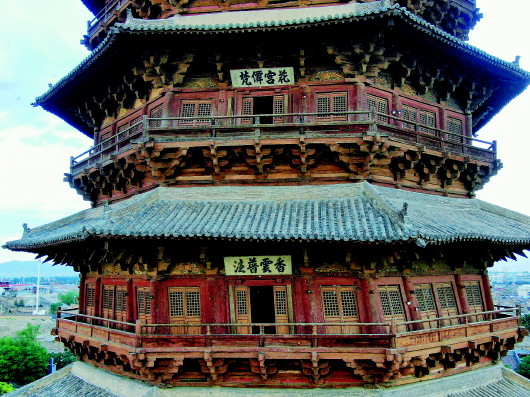 這一修繕工程包括加固木塔臺基,更換損壞的樓板,補(bǔ)強(qiáng)有空洞的主梁,加固劈裂的柱子,補(bǔ)修斗拱,重新制作平座欄桿,整修木塔的門、窗、柵欄,全面維修瓦頂?shù)龋送膺€整修了佛宮寺內(nèi)的其他建筑。