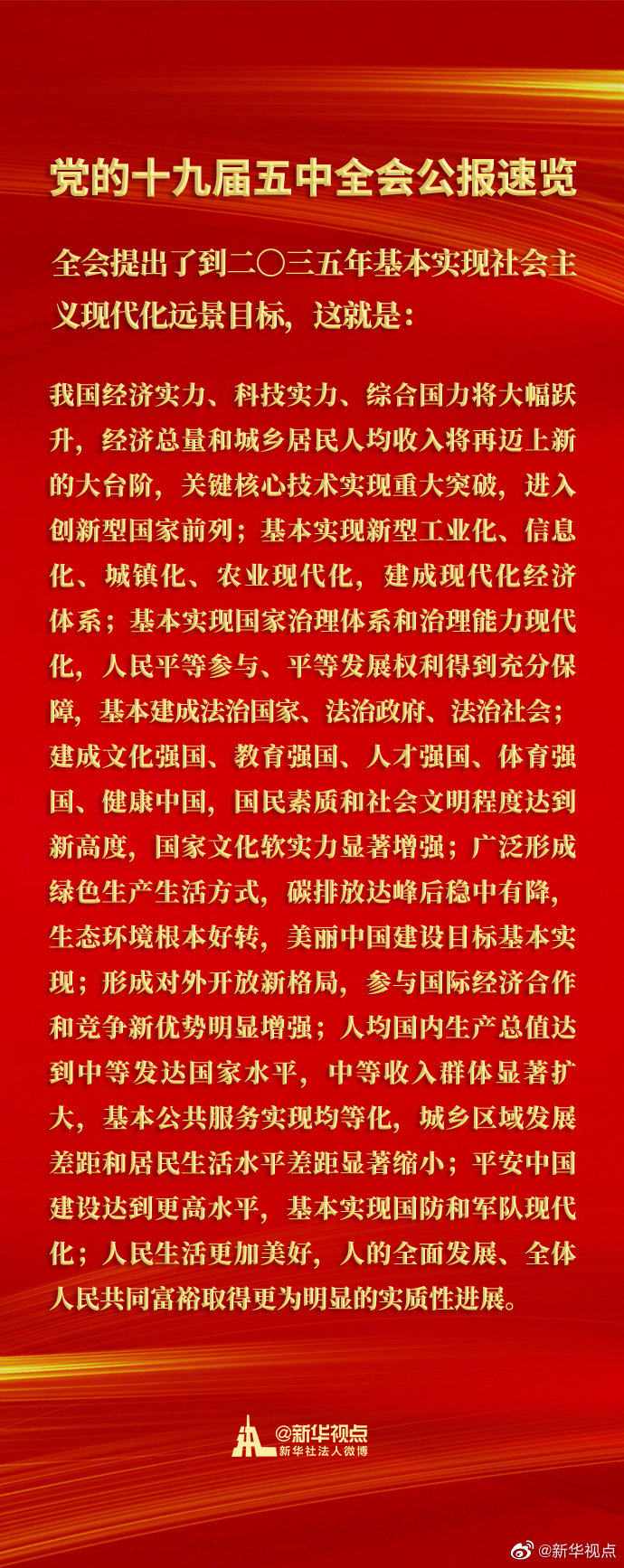 黨的十九屆五中全會公報速覽 | 全會提出了“十四五”時期經濟社會發展主要目標