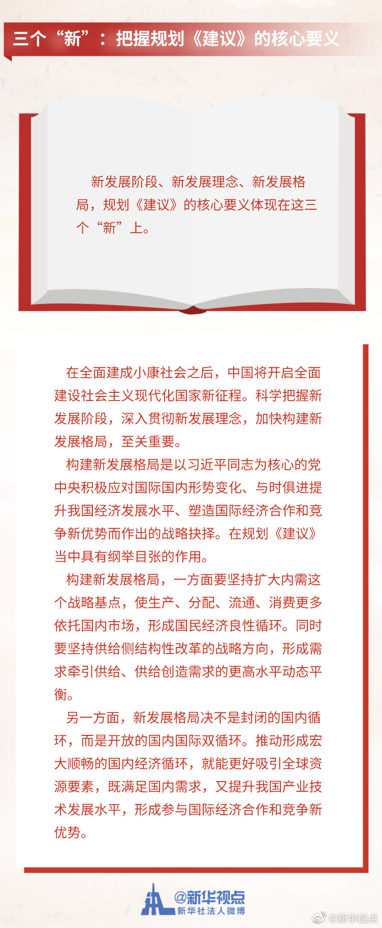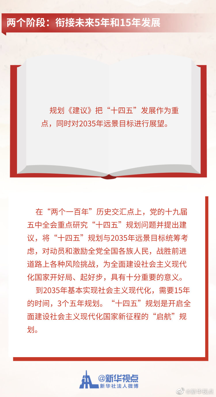 《中共中央關于制定國民經濟和社會發展第十四個五年規劃和二〇三五年遠景目標的建議》3日公布。這份長約2萬字的文件,為未來5年及15年的中國發展勾勒藍圖。記者梳理出規劃《建議》中的“一二三四五”,為觀察中國發展走向提供一個獨特視角。