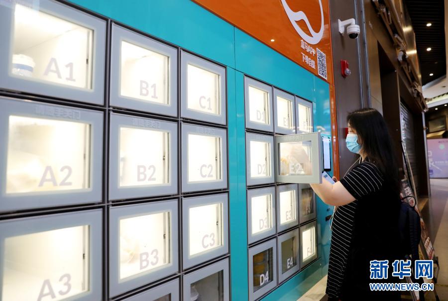 一位顧客通過APP掃碼,在上海地鐵13號線世博會博物館地鐵站附近的一家盒小馬服務點取餐柜中拿取預定的早餐(7月17日攝)。新華社記者 方喆 攝