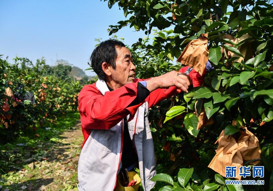 在四川省資陽(yáng)市安岳縣石橋村,果農(nóng)在采摘檸檬(11月11日攝)。新華社記者 周相吉 攝