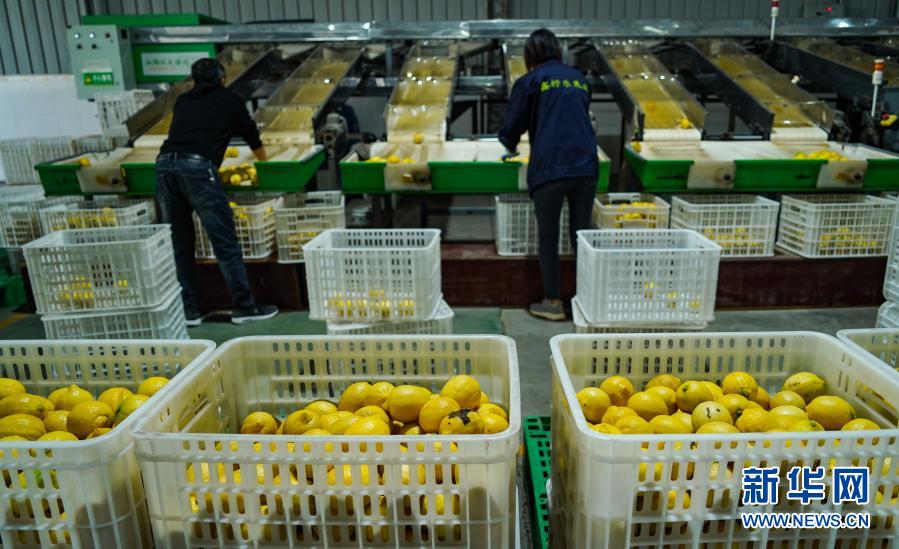 在四川省資陽(yáng)市安岳縣鑫檸樂(lè)果業(yè)有限公司車(chē)間,工人通過(guò)生產(chǎn)線分裝檸檬(11月11日攝)。新華社記者 王曦 攝