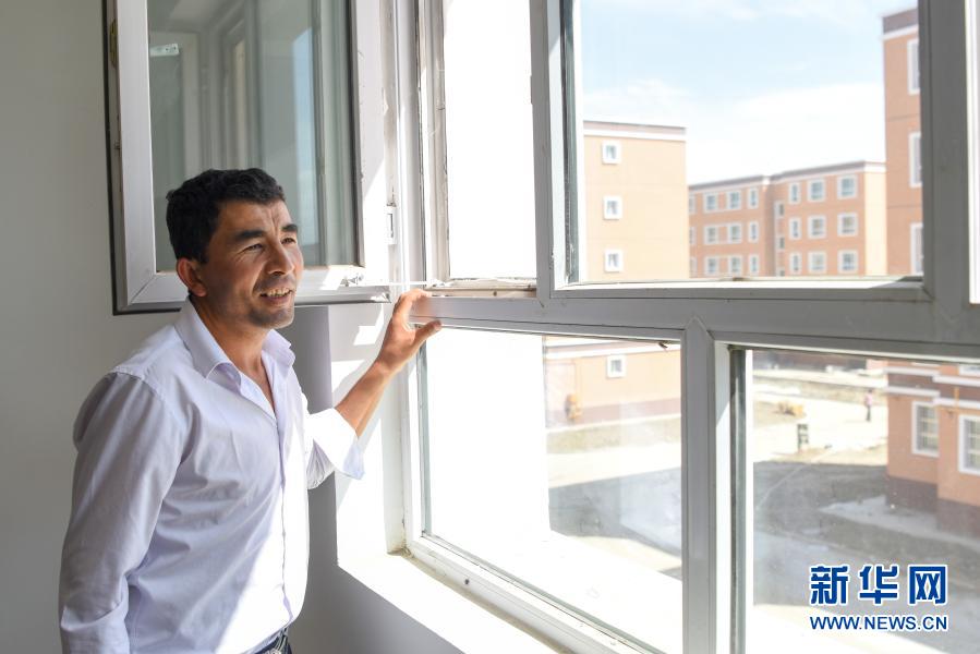 新疆葉城縣棋盤鄉居民來到葉城縣易地扶貧搬遷物流園區安置點查看新房(2019年8月19日攝)。新華社記者 丁磊 攝