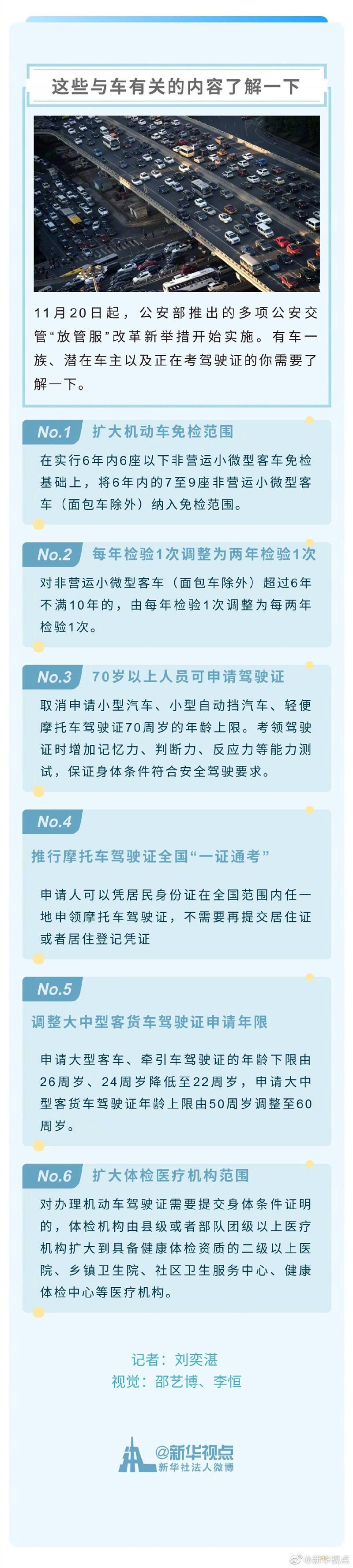 11月20日起,公安部推出的多項公安交管“放管服”改革新舉措開始實施。有車一族、潛在車主以及正在考駕駛證的你需要了解一下。