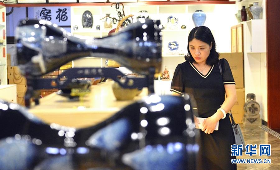 觀眾在河南省平頂山市魯山縣花瓷藝術館內欣賞花瓷工藝品(7月27日攝)。新華社發(王克偉 攝)