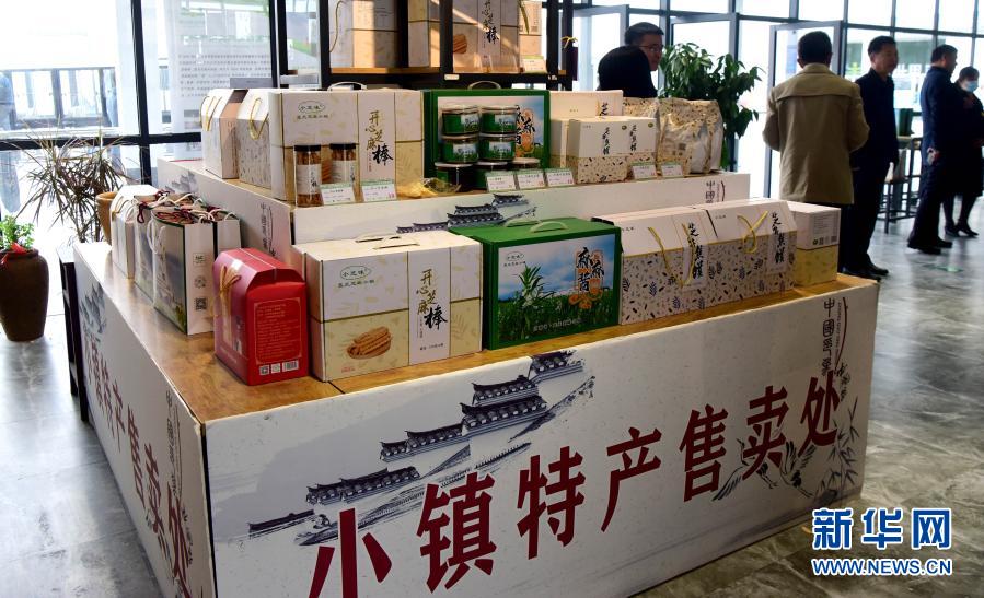 這是河南省駐馬店市平輿縣小鎮(zhèn)特產(chǎn)售賣(mài)系列產(chǎn)品展柜(10月28日攝)。