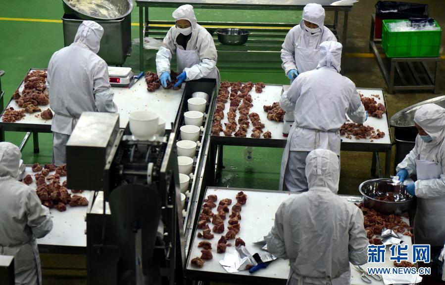 這是河南省駐馬店市泌陽(yáng)縣恒都食品有限公司肉制品精深加工車(chē)間一角(10月29日攝)。