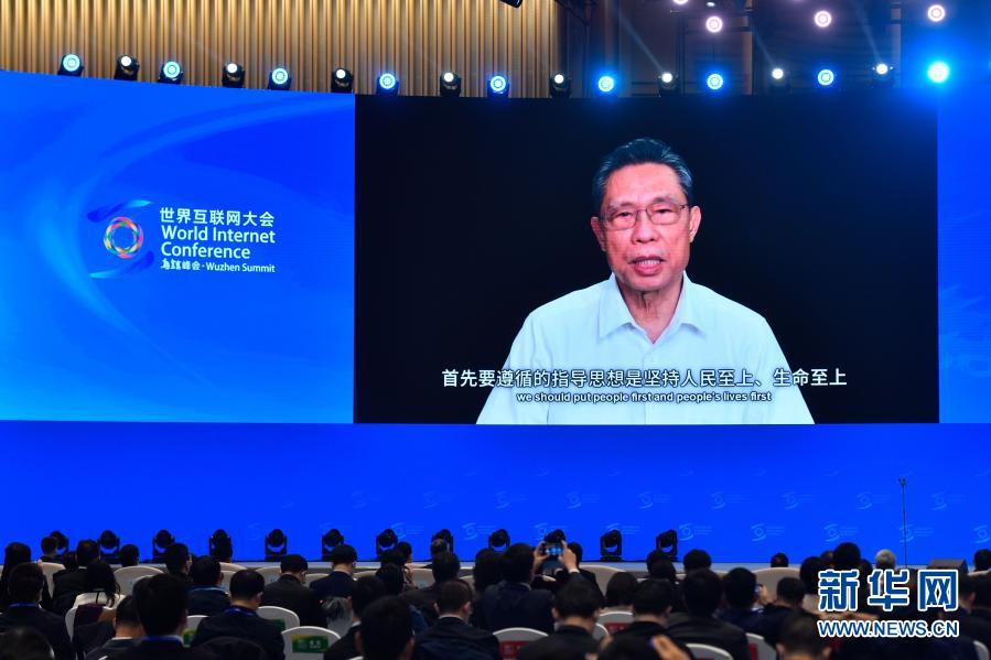 中國工程院院士鐘南山在世界互聯網大會·互聯網發展論壇“數字經濟與科技抗疫”主論壇上以視頻形式發表演講(11月23日攝)。新華社記者 黃宗治 攝