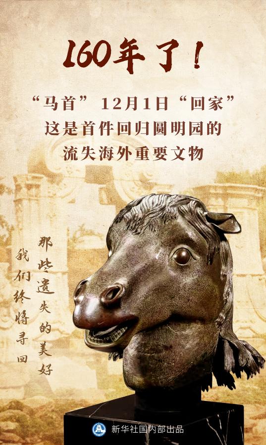 闊別160載,馬首銅像12月1日回到圓明園。
