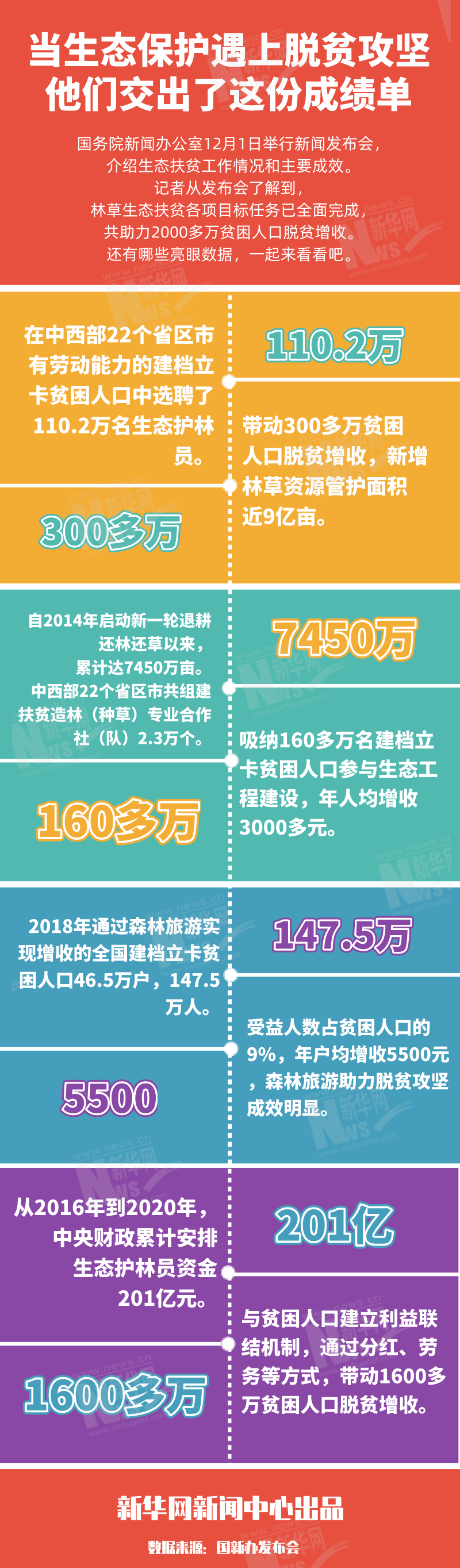 ??? 國務院新聞辦公室12月1日舉行新聞發布會,介紹生態扶貧工作情況和主要成效。記者從發布會了解到,林草生態扶貧各項目標任務已全面完成,共助力2000多萬貧困人口脫貧增收。還有哪些亮眼數據,一起來看看吧。