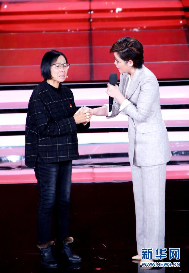 張桂梅(左)在“時代楷?!卑l(fā)布儀式上與主持人交流(12月7日攝)。新華社記者 潘旭 攝