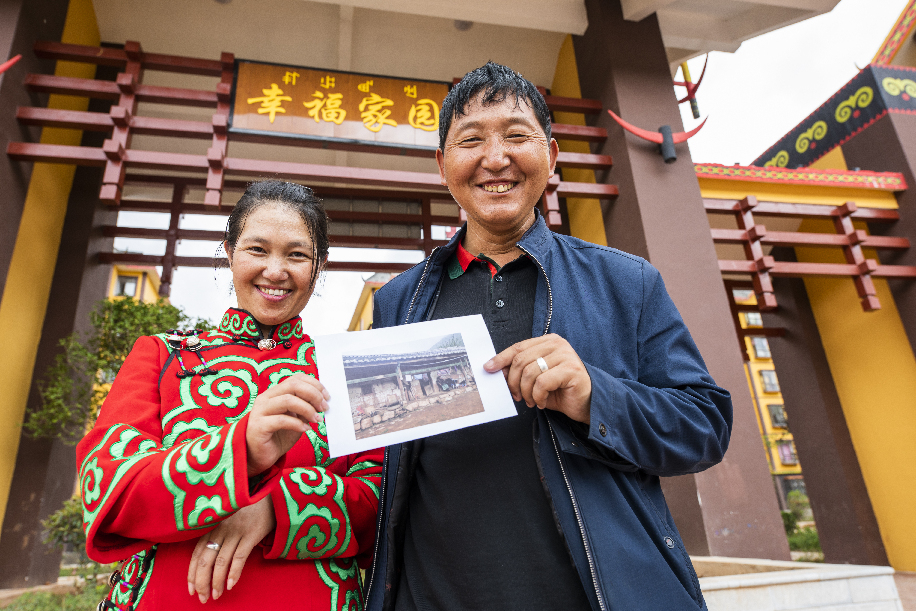 ????云南省麗江市寧蒗縣彝族群眾沙阿布夫婦受益于易地扶貧,喜遷“幸福家園”。孫權偉 攝