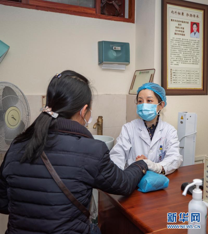 12月4日,重慶市中醫(yī)院肛腸科現(xiàn)任主任徐月(右)在肛腸科門診接診。新華社記者 黃偉 攝