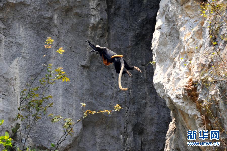 “石山精靈”又名白頭葉猴,是我國特有的國家一級重點保護野生動物,種群數量稀少,主要分布在崇左市左江和明江之間不足200平方公里的喀斯特石山地區。