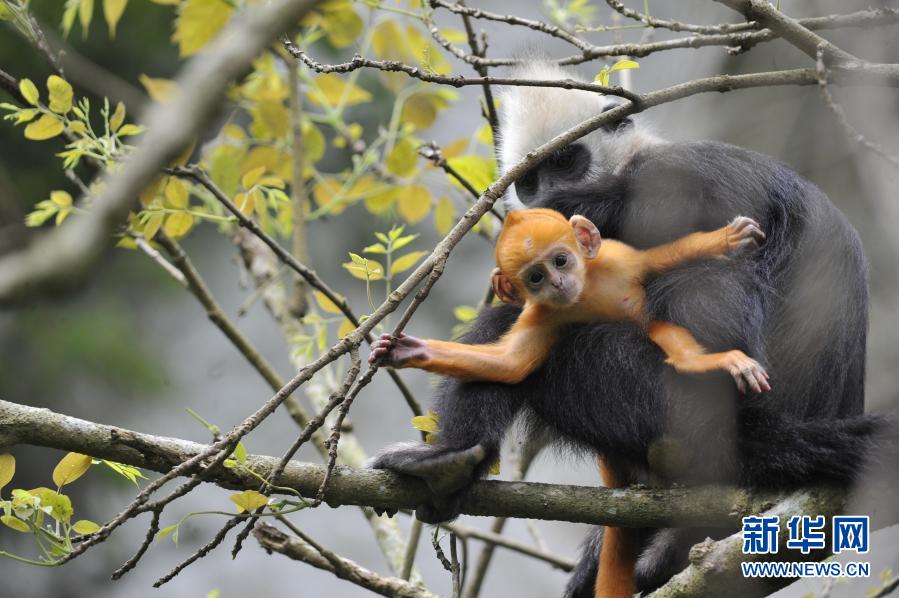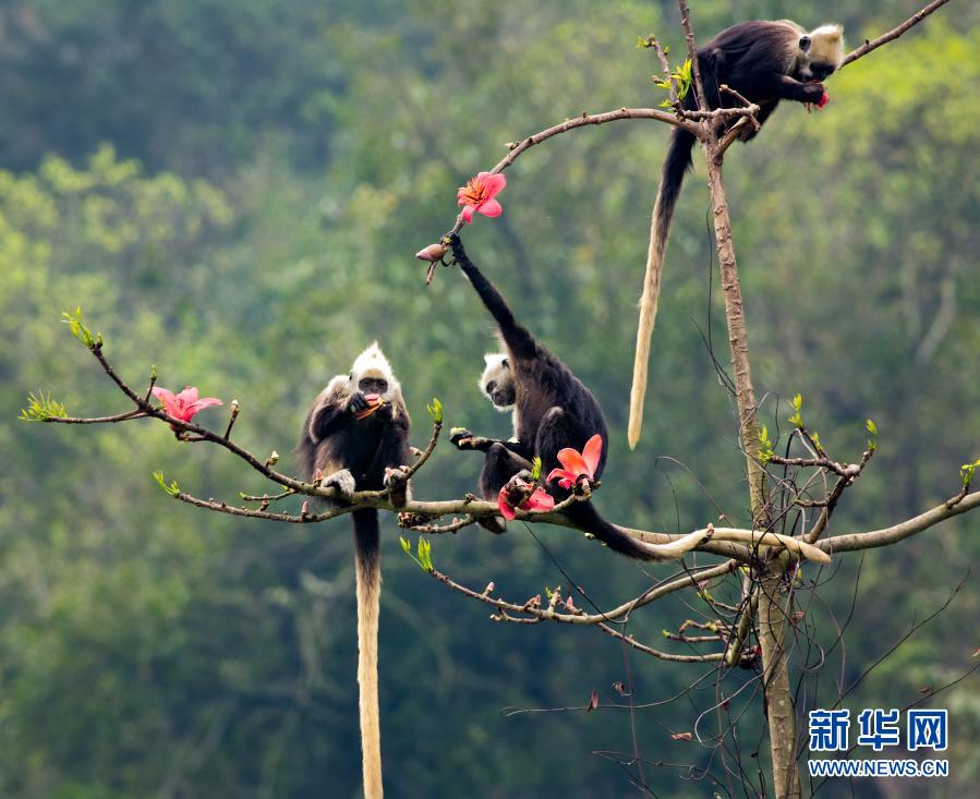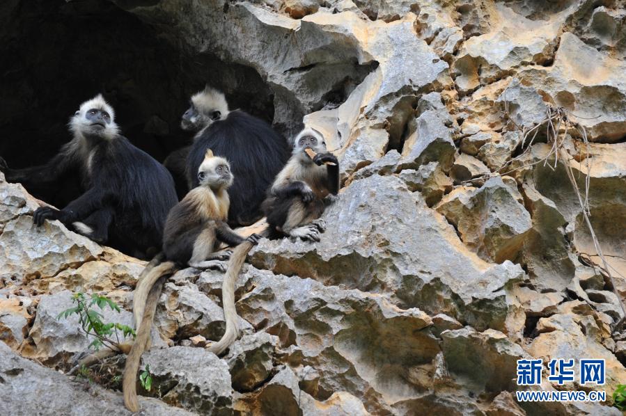 2020年12月19日,在廣西崇左白頭葉猴國家級自然保護區拍攝的白頭葉猴(資料照片)。新華社發(廣西崇左白頭葉猴國家級自然保護區提供)