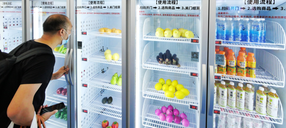 8月3日,廣州,智能零售、生鮮科技設(shè)備展上生鮮無人設(shè)備