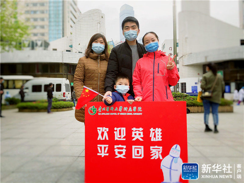 ↑貴州醫(yī)科大學(xué)附屬醫(yī)院護(hù)士葉青(右一)結(jié)束武漢抗疫工作后回到貴陽和家人合影留念(資料照片)。新華社發(fā)