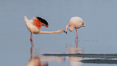 3月10日,兩名青海醫療隊隊員在武昌方艙醫院等待出艙時小憩。