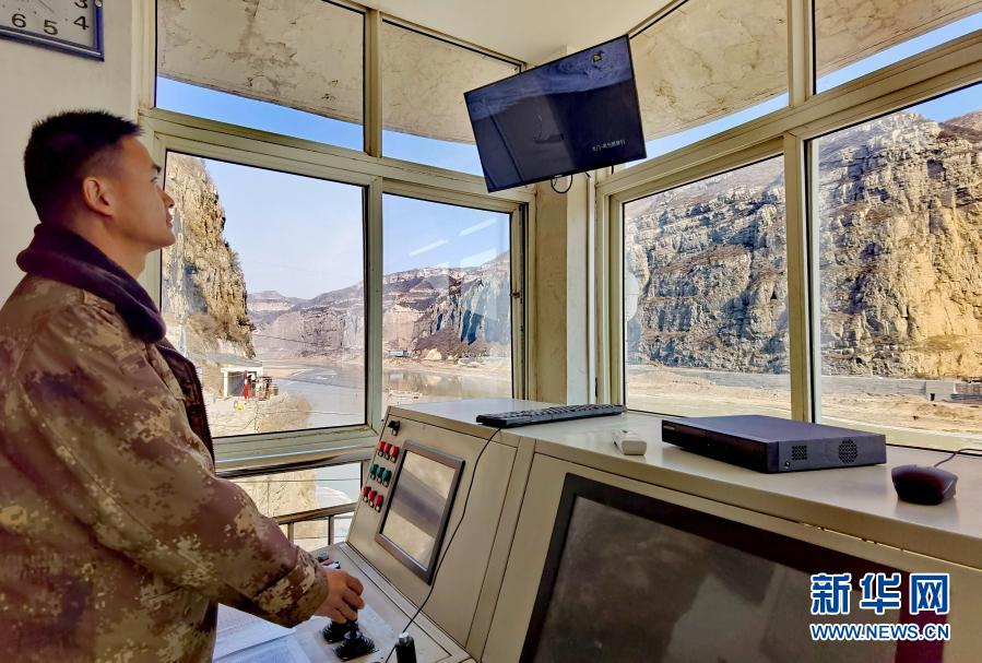 龍門(mén)水文站工作人員在纜道操作機(jī)房?jī)?nèi)操控纜道進(jìn)行流量測(cè)驗(yàn)(12月27日攝,手機(jī)照片)。新華社記者 劉詩(shī)平 攝