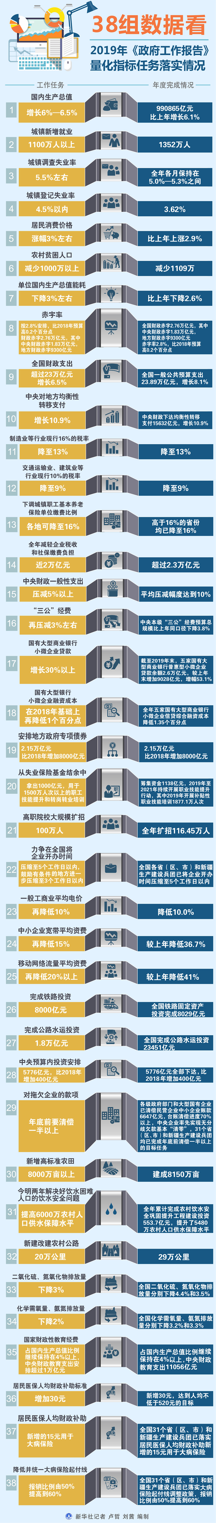 新華社北京5月19日電(記者高亢)全國(guó)兩會(huì)召開在即,國(guó)務(wù)院19日對(duì)外公布2019年《政府工作報(bào)告》量化指標(biāo)任務(wù)落實(shí)情況表,38項(xiàng)指標(biāo)任務(wù)均已完成。