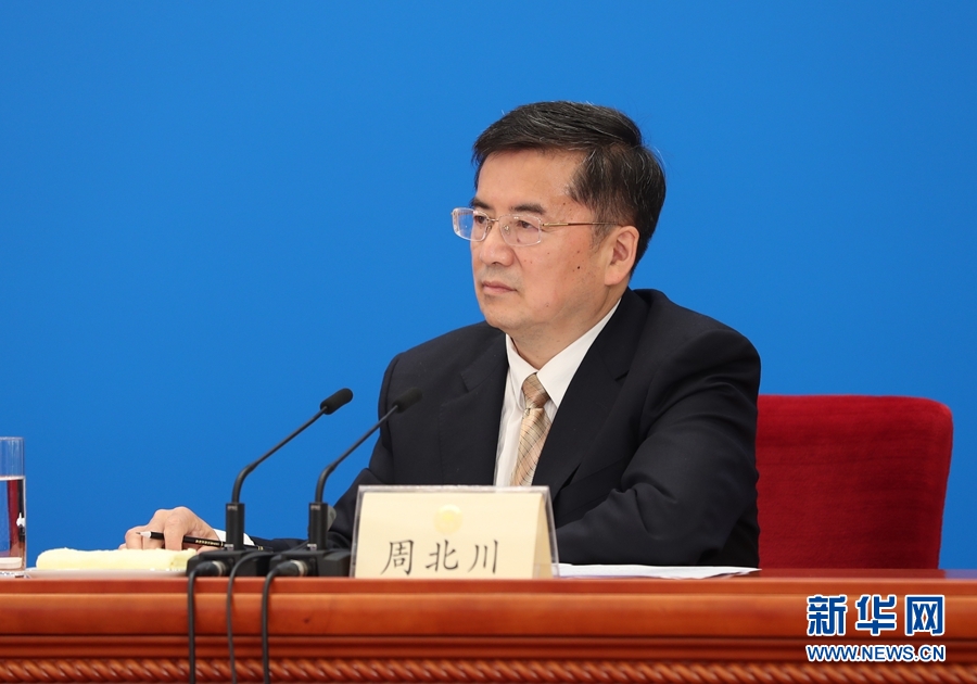5月20日,全國政協十三屆三次會議召開新聞發布會。大會新聞發言人郭衛民向中外媒體介紹本次大會有關情況并回答記者提問。圖為新聞發布會主持人周北川。新華網記者 王翰林 攝