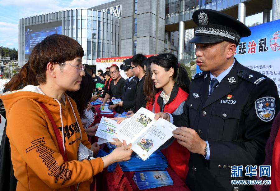 福建省福州市永泰縣公安干警在掃黑除惡專項斗爭宣傳活動上向群眾介紹專項斗爭成果(2020年1月6日攝)。新華社記者 張國俊 攝