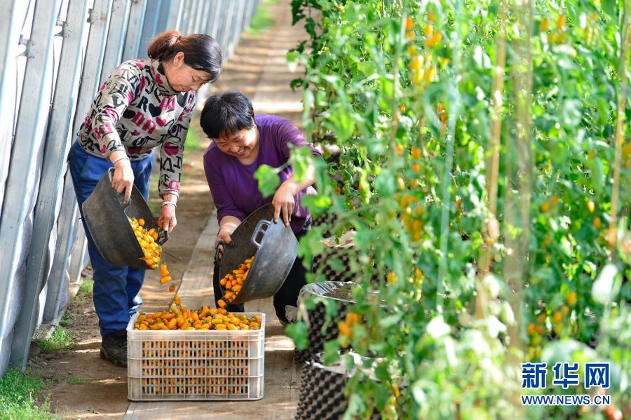 2月2日,在呼和浩特市經(jīng)濟作物工作站引種試驗示范基地,工作人員收獲越冬茬口感型番茄。新華社發(fā)(王正 攝)