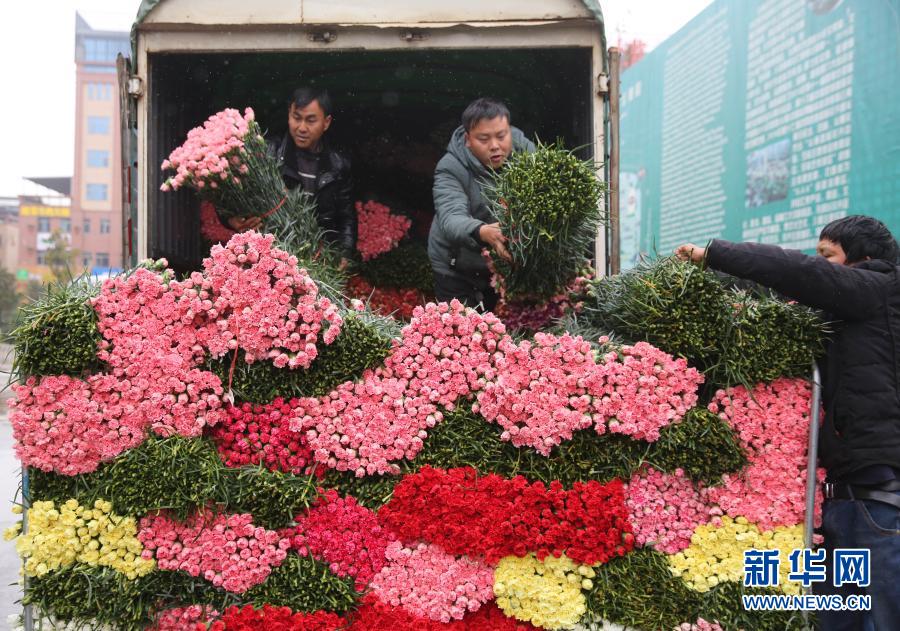 2月9日,商家在昆明斗南花卉市場準備鮮花。新華社發(fā)(梁志強 攝)