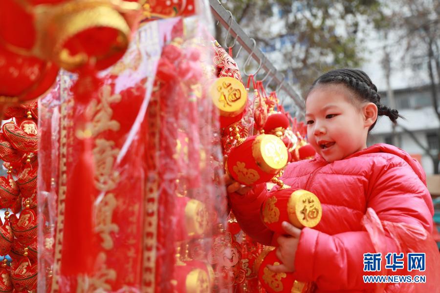 2月10日,一名小朋友在安徽省淮北市一年貨市場挑選新年飾品。新華社發(fā)(萬善朝 攝)