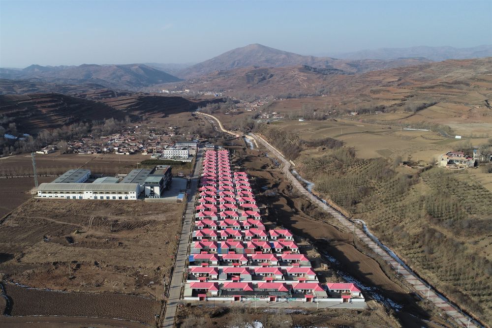 這是2月6日在甘肅省定西市渭源縣元古堆村拍攝的易地扶貧搬遷點(無人機照片)。新華社記者 馬希平 攝