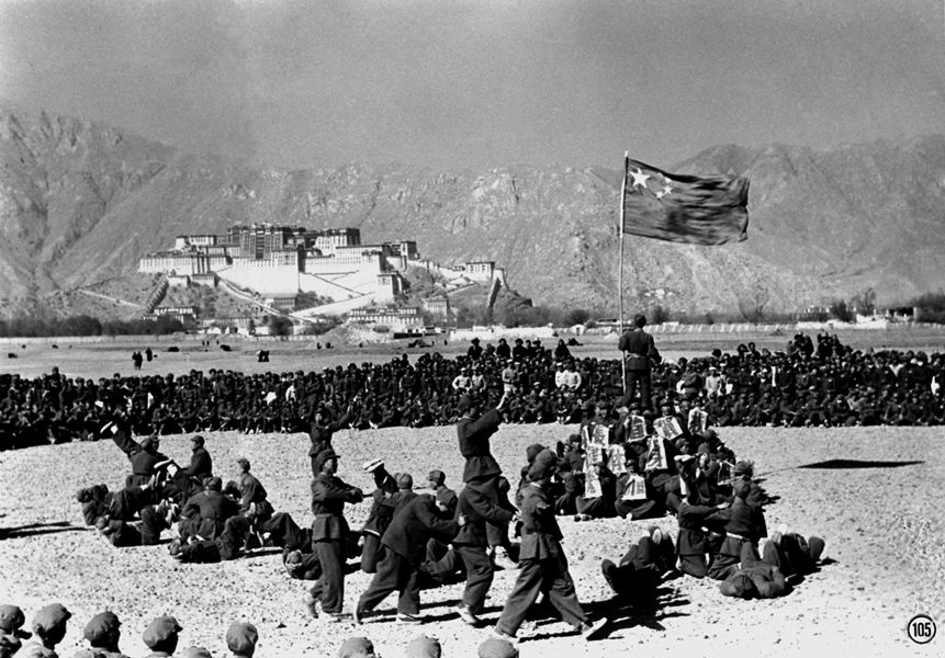 西藏和平解放后,人民解放軍與藏民在布達拉宮前歡度新年。 新華社圖片