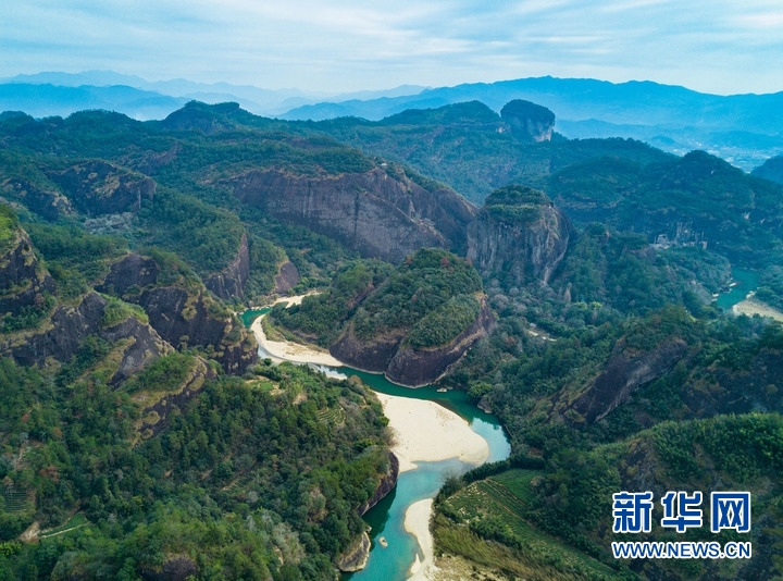 武夷山風景名勝區內的綠水青山(無人機照片,2021年1月3日攝)。新華社記者宋為偉攝