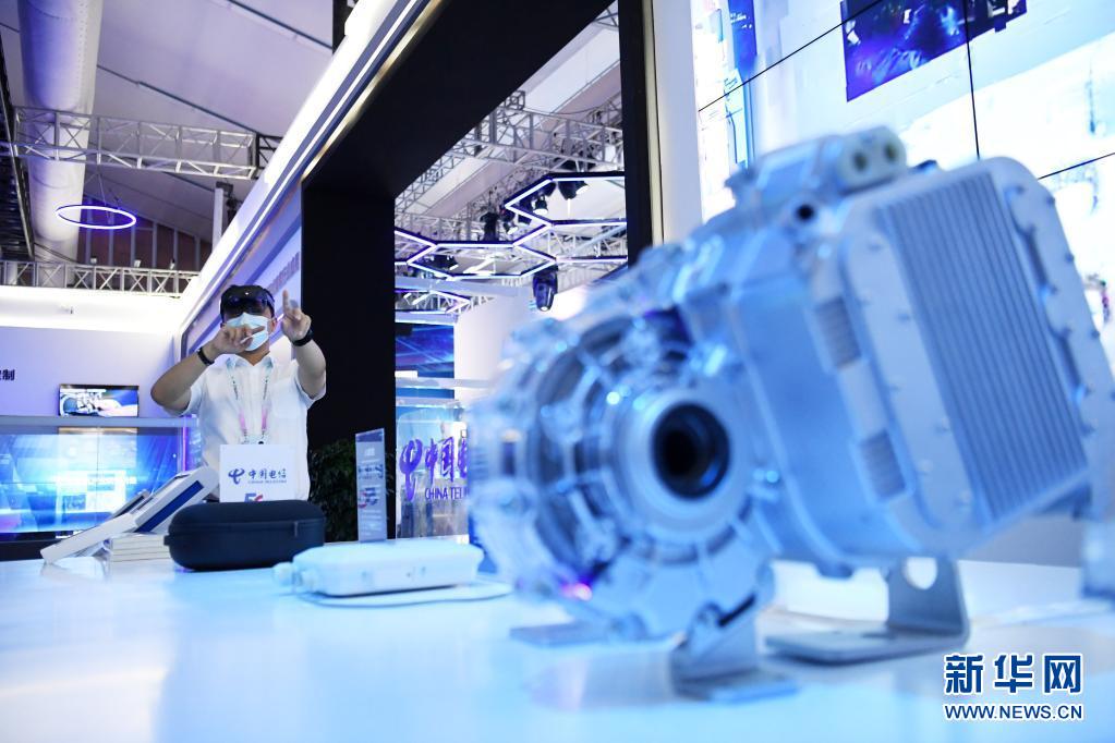 在重慶舉行的2020線上中國國際智能產業博覽會上,工作人員演示“5G+AR遠程運維技術”(2020年9月15日攝)。新華社記者 唐奕 攝