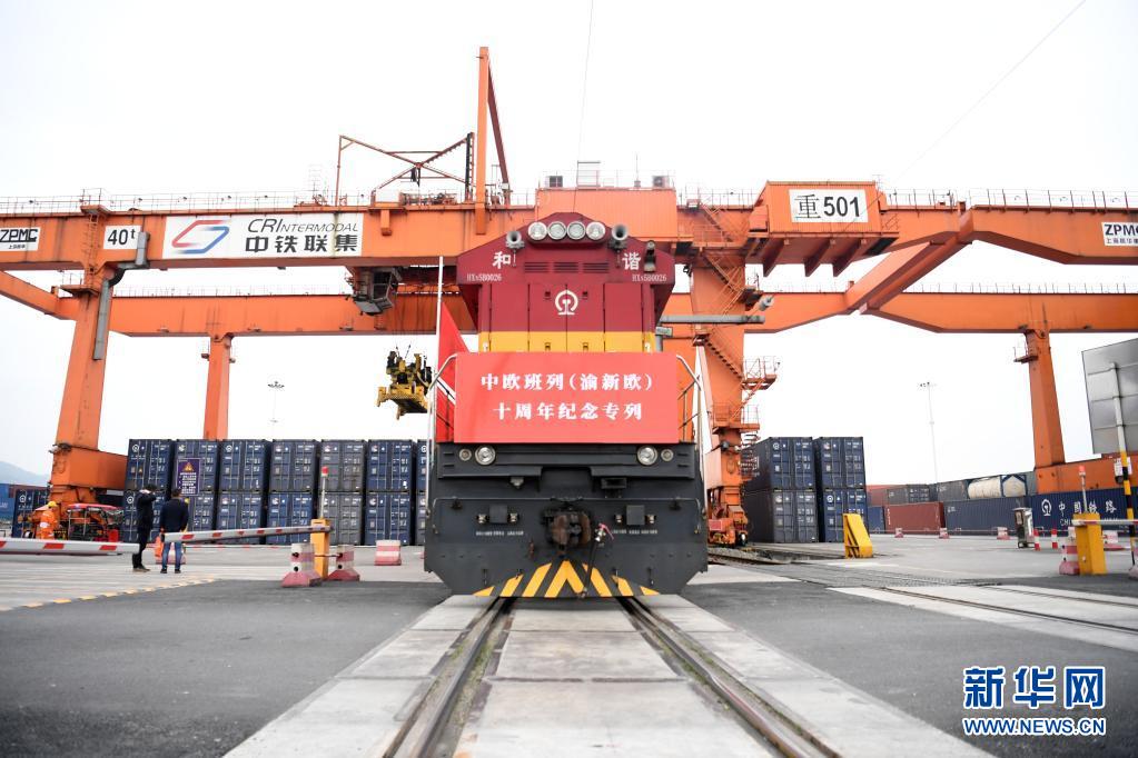 中歐班列(渝新歐)十周年紀念專列在重慶團結村站等待發車(3月19日攝)。新華社記者 唐奕 攝