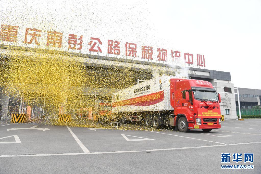 在重慶南彭公路保稅物流中心,重慶至老撾萬象跨境公路班車直通車發車(4月28日攝)。新華社記者 唐奕 攝