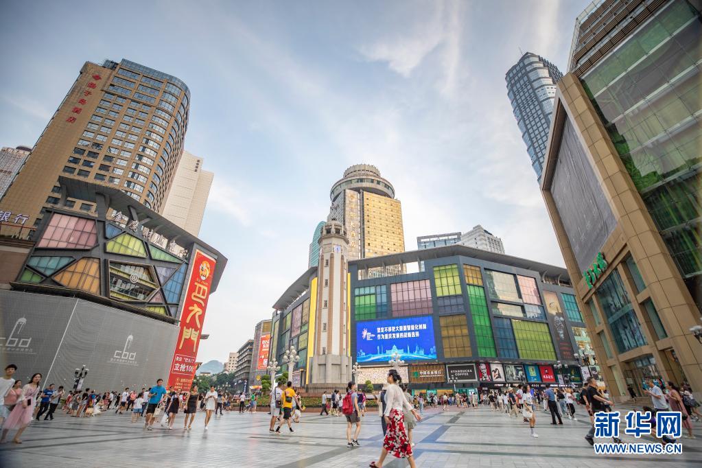 游客在重慶市渝中區解放碑步行街觀光游玩(2019年8月20日攝)。新華社記者 黃偉 攝