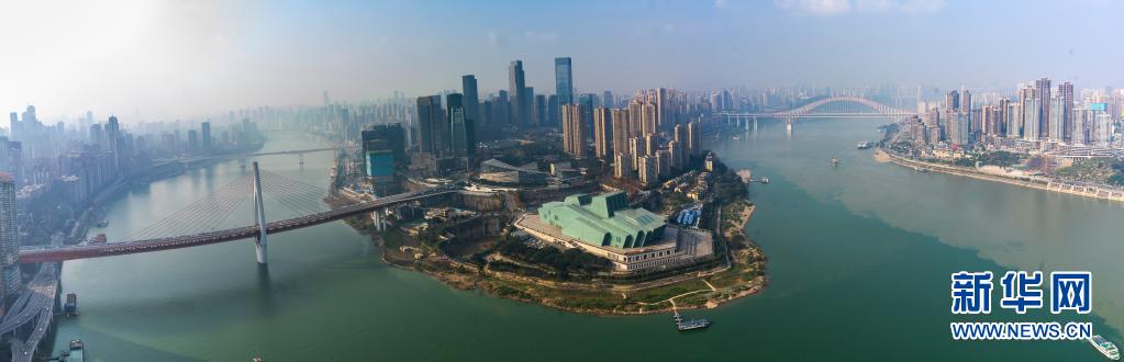 重慶市中心城區長江、嘉陵江兩江交匯處的風光(2020年12月21日攝)。新華社記者 劉潺 攝